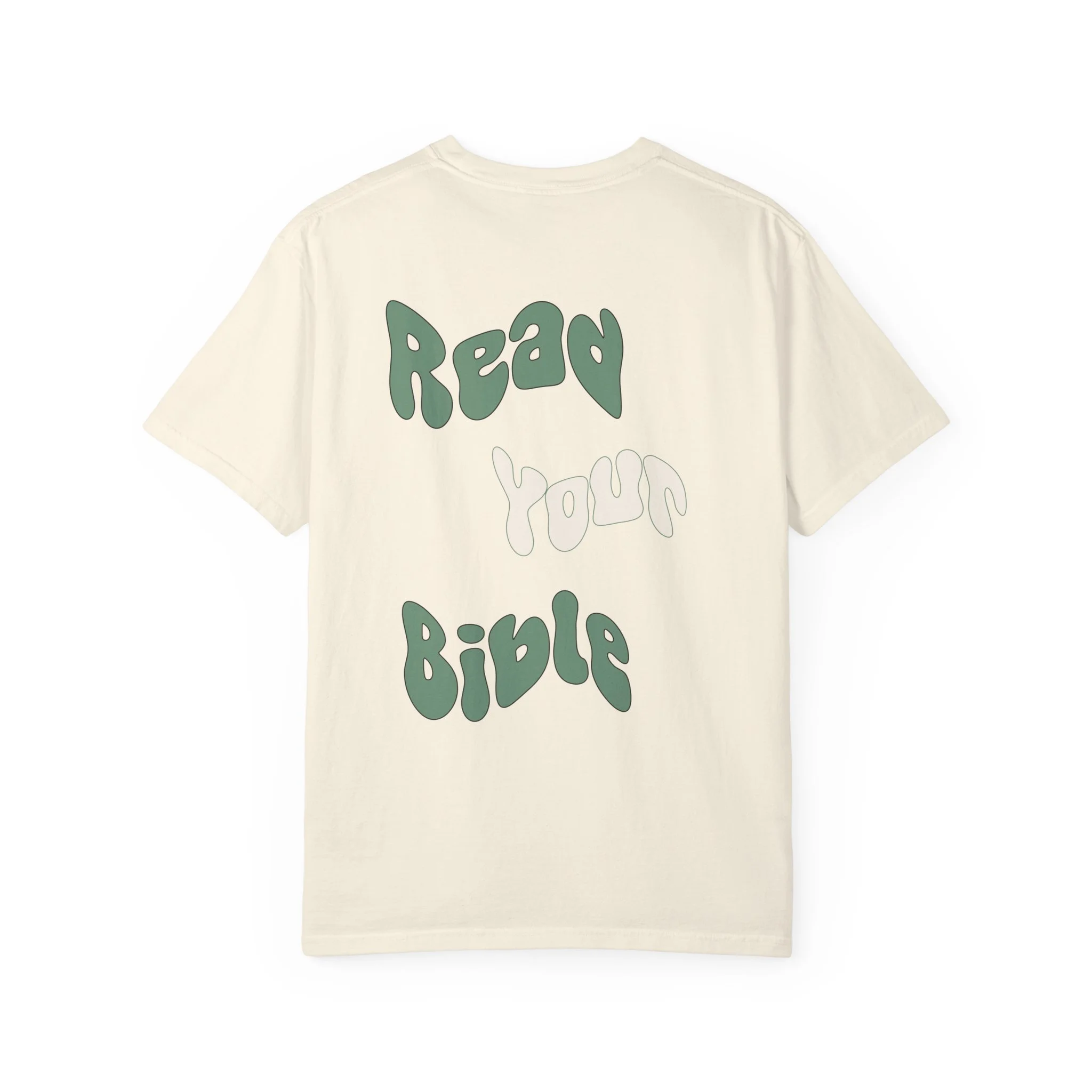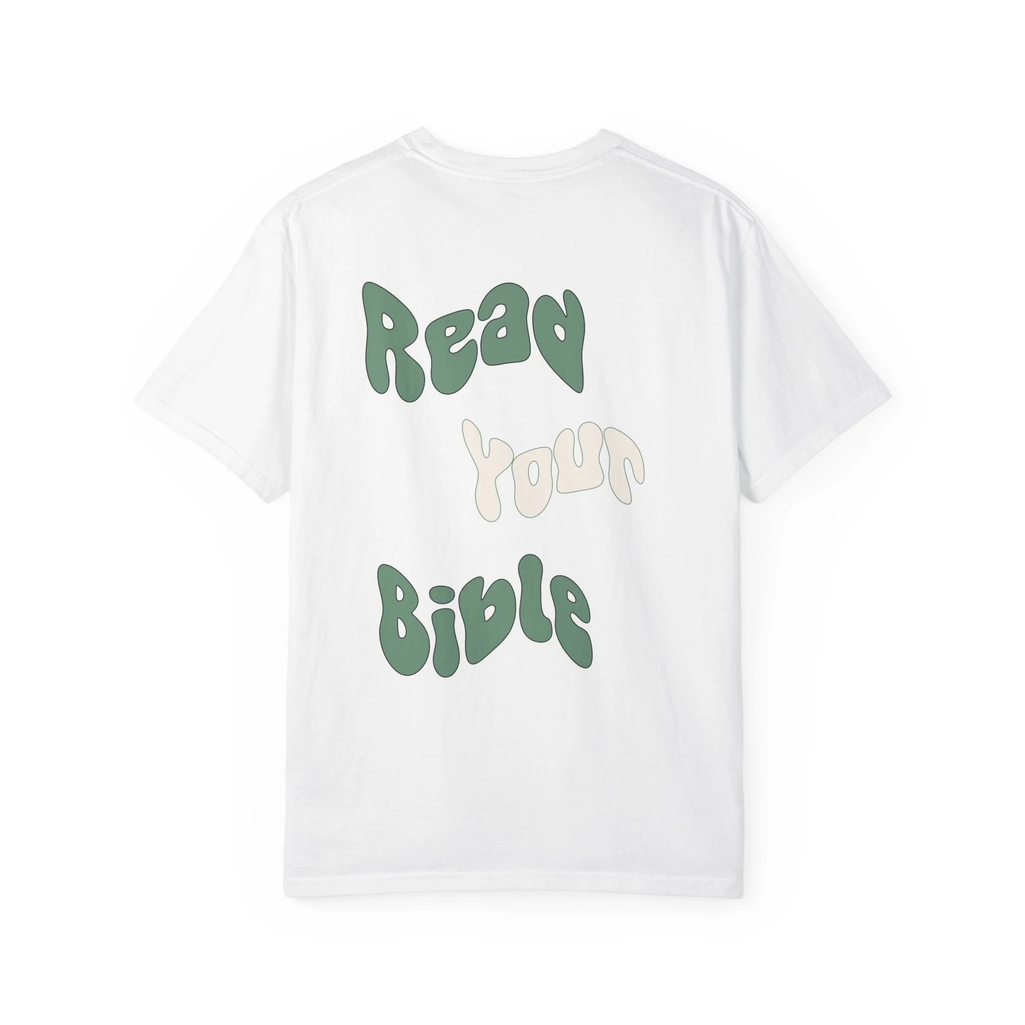 Carry faith with you wherever you go with this meaningful tee. Featuring your chosen Bible verse on the front and a bold “Read Your Bible” reminder on the back. Designed for comfort and purpose, it’s perfect for everyday wear, Bible study nights, or Sunday mornings.